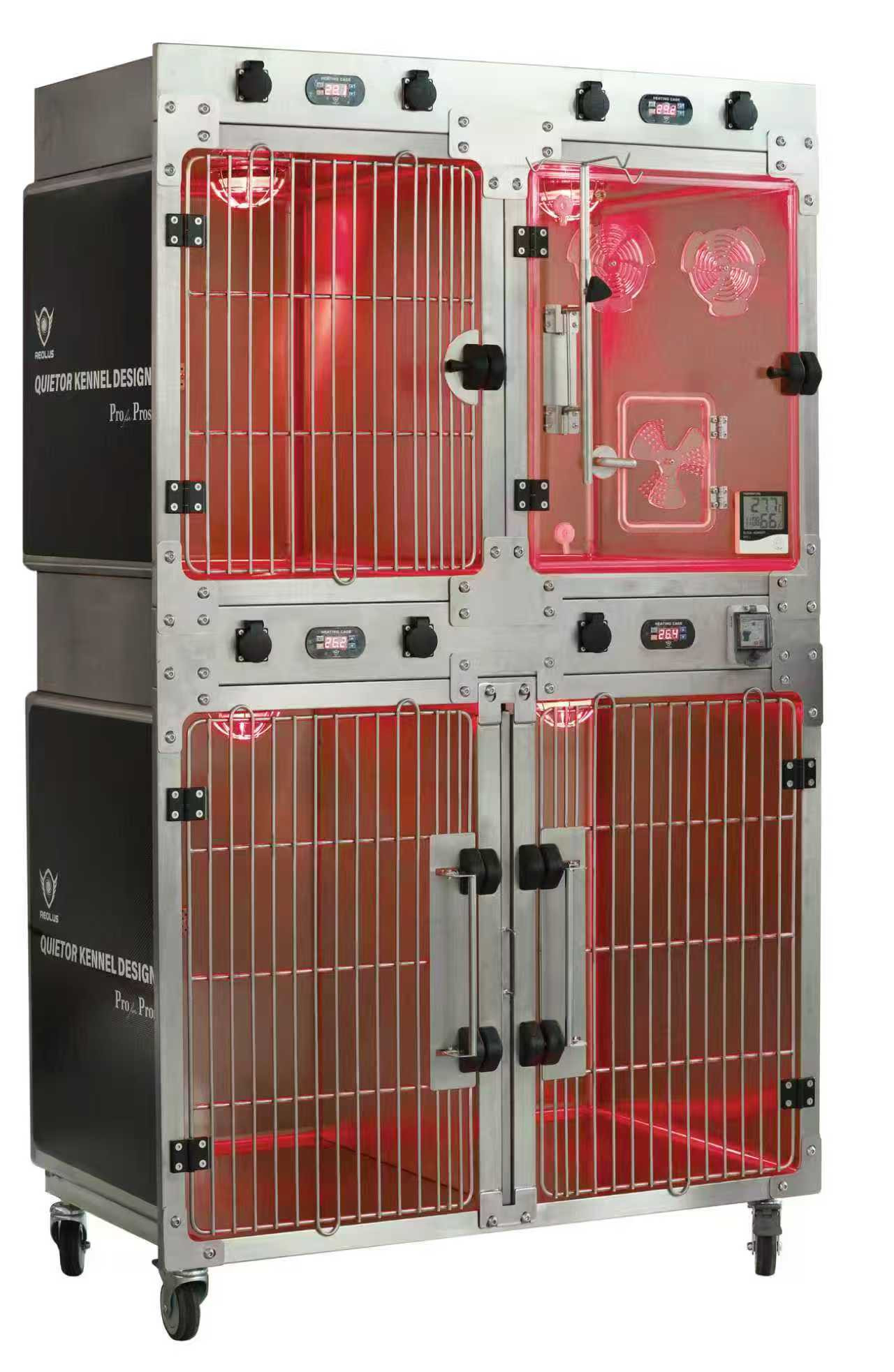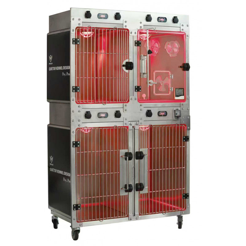 Tout en partageant l’ensemble des caractéristiques de la VET-509, la VET-509 IR intègre des lampes infrarouges dans chaque cage, contrôlables via un écran individuel.