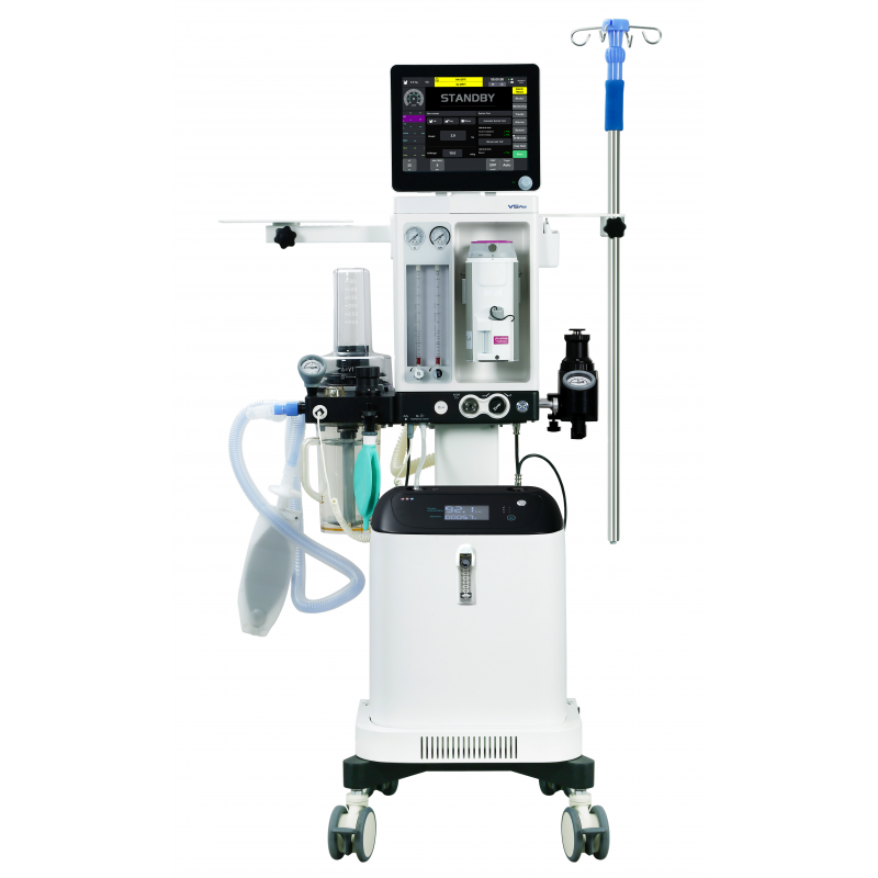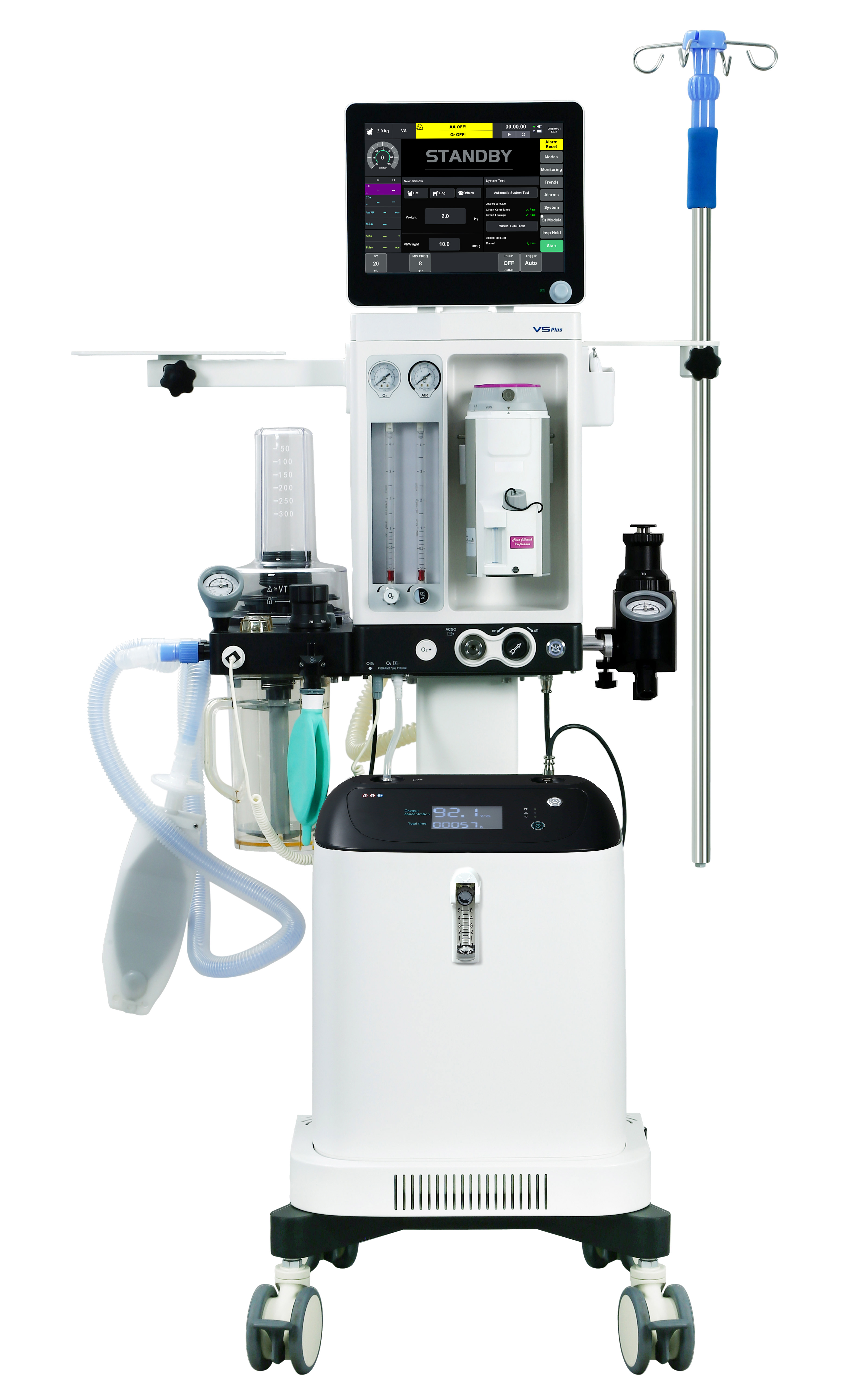 Complète avec bloc bain ainsi que des capteurs CO₂ et O₂, elle propose 10 modes de ventilation, dont l’AVS, permettant un ajustement automatique des paramètres respiratoires en fonction de l’ETCO2.