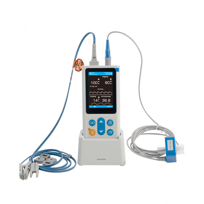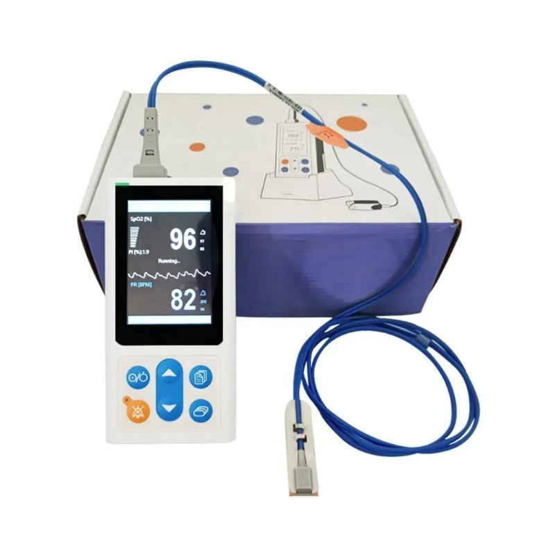 Son écran couleur 3,5” offre un affichage clair des valeurs SpO2 et du rythme cardiaque, avec alarme visuelle et sonore en cas d’anomalie.