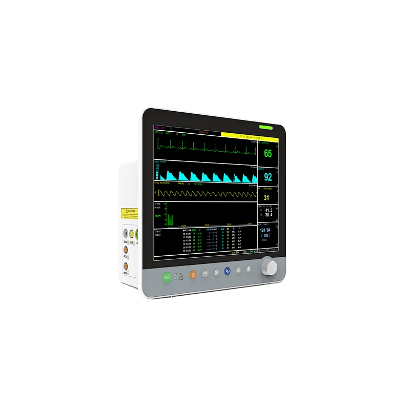Avec son écran 15’‘ il affiche en grand format l’ECG, la SPO2, la pression artérielle, la température et la capnographie.