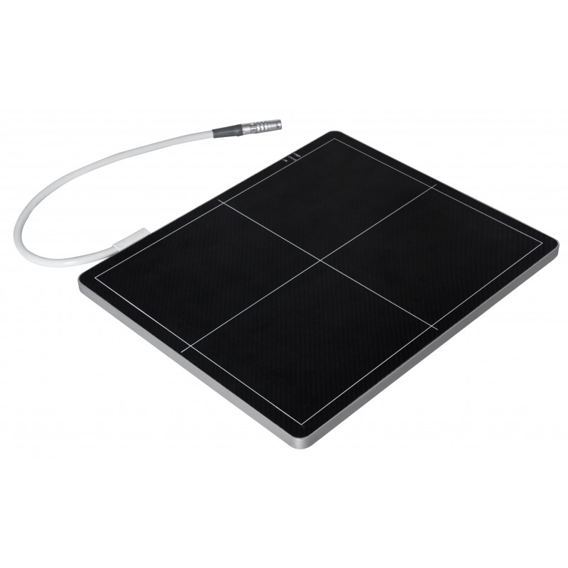 Ce capteur plan de 43 × 43 cm permet de réaliser des radiographies vétérinaires par transmission instantanée des images.